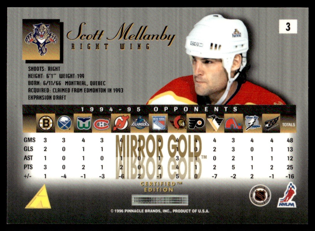 | 1995-96 Select Certified Mirror Gold Scott Mellanby Florida Panthers #3 |