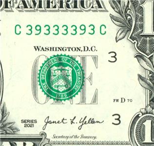Very Fine (or VF): A VF note should have nearly full remaining crispness, although several folds, wrinkles, or other signs of circulation may be present. Mild soiling might be apparent, but it should not be serious. No tears, stains, or other impairments should be readily apparent, and the note should still have nice eye appeal. Several minor pinholes may be visible when the note is held to a light. The corners may be slightly frayed or slightly rounded at this grade level, but the paper should retain nearly full crispness and there should be no loss of color in the design.