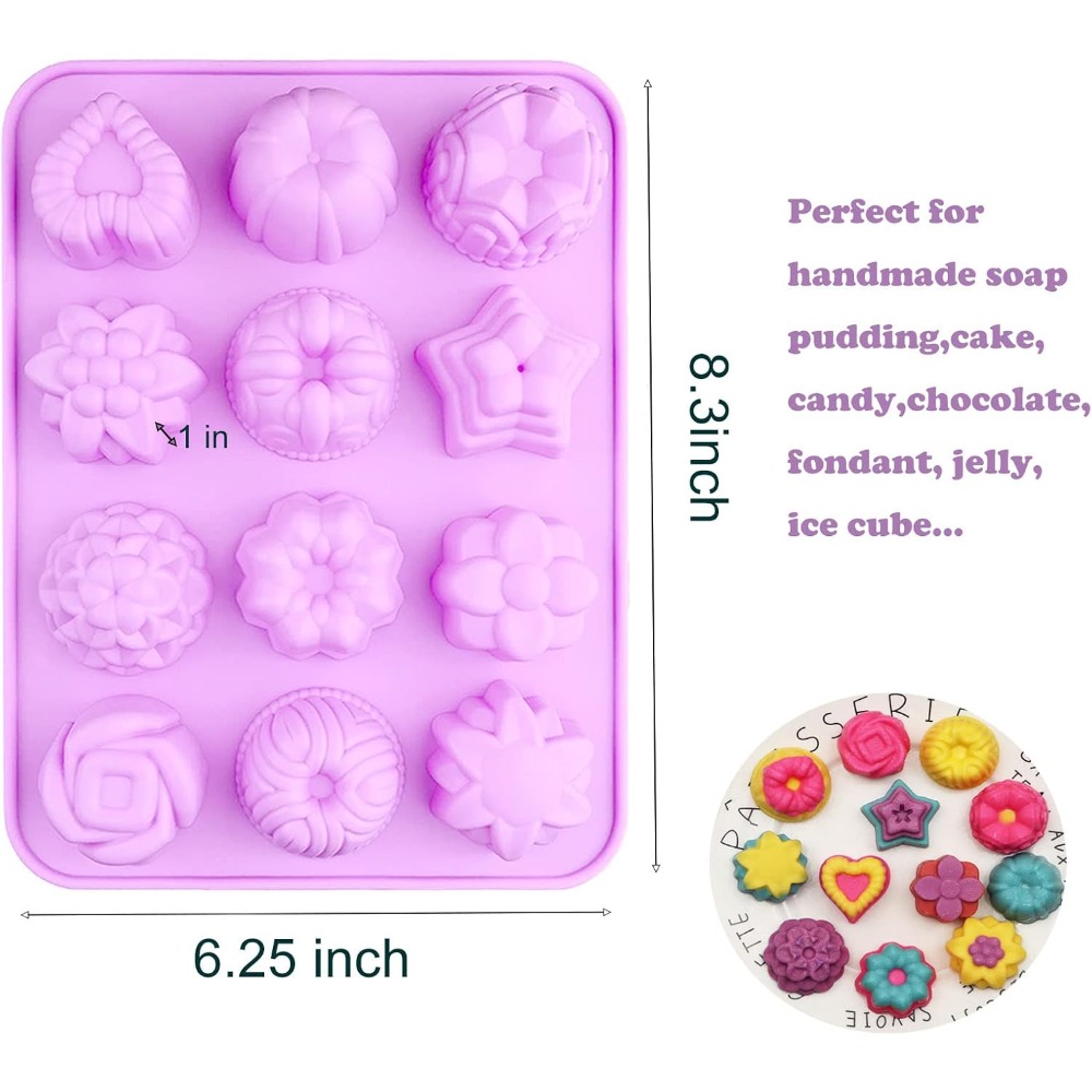 [Food-Grade Material] The 12-cavity flower silicone mold is made of food-grade thickened silicone, BPA-free, flexible and non-stick, and safe for use in ovens, microwaves, refrigerators, and dishwashers. The temperature resistance range is -104 to +446 degrees Fahrenheit (-40 to +230 degrees Celsius).