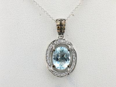 Le Vian Pendant featuring 1 3/8 cts. Sea Blue Aquamarine, 1/10 cts. Chocolate Diamonds , 1/6 cts. Vanilla Diamonds set in 14K White Gold