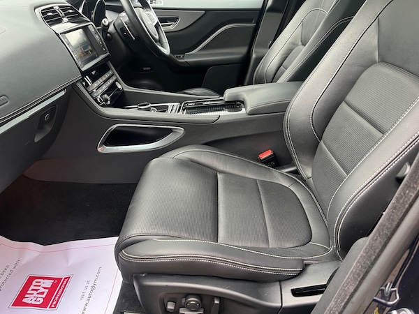FULL BLACK LEATHER ELECTRIC HEATED FRONT SEATS, DRIVERS SEAT MEMORY, FIXED GLASS PANORAMIC ROOF WITH POWER BLIND, SATELLITE NAVIGATION, REAR VIEW CAMERA, FRONT AND REAR PARKING SENSORS, BLUETOOTH, ELECTRIC DOOR MIRRORS, DAB DIGITAL RADIO, MERIDIAN SOUND SYSTEM, AUX CONNCTION, LANE DEPARTURE, LEATHER MULTI FUNCTION STEERING WHEEL, CRUISE CONTROL, PADDLE GEAR CHANGE, TRIP COMPUTER, AUTO DIMMING REAR VIEW MIRROR, KEYLESS START, ELECTRIC PARKING BRAKE, MULTI AIR BAGS, ELECTRIC WINDOWS, FRONT CENTRE ARM REST, BLACK ROOF LINING, CLIMATE CONTROL, REMOTE TAILGATE RELEASE, 22'' 9 SPOKE GREY / DIAMOND TURNED ALLOY WHEELS, DAYTIME RUNNING LIGHTS, TAIGATE SPOILER, SPLIT FOLDING REAR SEATS, ISOFIX PREPERATION, tailgate spoiler, steel space saver spare wheel, power open / close tailgate, black roof rails, carpet mats, remote central locking with two keys, 2 Owners from new with Jaguar Service History ( 5 SERVICES ) Visit 4x4 specialists over 80 vehicles in stock.