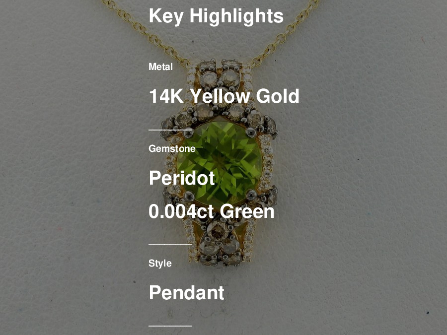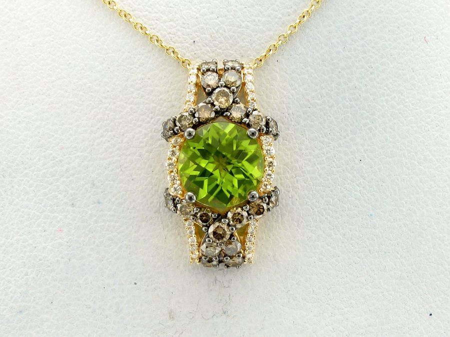 Le Vian Grand Sample Sale Pendant featuring 2 1/2 cts. Green Apple Peridot, 7/8 cts. Chocolate Diamonds, 1/8 cts. White Diamonds set in 14K Yellow Gold