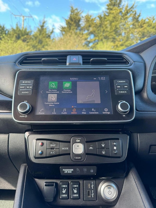 The NISSAN LEAF 39kWh Tekna is a forward-thinking electric vehicle that combines zero-emission driving with advanced technology, comfort, and safety. Powered by a 39kWh battery delivering 150 ps, it features smooth automatic transmission, an efficient 6.6kW AC onboard charger, and compatibility with 50kW CHAdeMO quick charging, making long-distance and daily commutes effortless. The exterior is highlighted by 17-inch black diamond-cut alloy wheels, a sleek roof spoiler, shark fin antenna, body-coloured door mirrors with integrated turn signals, LED signature daytime running lights, LED tail lights, and rear privacy glass. Intelligent auto headlights, high beam assist, follow-me-home lighting, and a grey rear bumper finisher add both style and practicality. Inside, the cabin is packed with technology and comfort features. The 8-inch colour touchscreen display, 7-inch combimeter, NissanConnect Services app, and integrated navigation with voice control keep you connected. Android Auto, Apple CarPlay, and the BOSE premium audio system with seven speakers provide entertainment, while dual-zone automatic climate control with pollen filter and heat pump ensures a comfortable environment. The multifunction leather steering wheel, telescopic adjustment, front electric windows, and heated "Heat Pack" seats enhance convenience for both driver and passengers. Safety and driver-assist features are comprehensive, including six airbags, ABS with EBD and brake assist, ESP, Intelligent Emergency Braking with pedestrian recognition, ProPilot Pack with Intelligent Lane Intervention and Cruise Control, Blind Spot Intervention, Lane Departure Warning, Intelligent Trace and Ride Control, Rear Cross Traffic Alert, rear door child locks, and ISOFIX anchor points on rear seats. Additional technology includes E-Pedal driving, EV Connect telematics system, TPMS tyre pressure monitoring, and intelligent charge port illumination with remote opening. For added peace of mind, if the MOT is under six months, well ensure a fresh MOT is completed before sale. The vehicle also comes with a standard three-month back-to-base warranty, with the option to extend it to a nationwide warranty for added reassurance. Nationwide delivery is also available. Finance Available — Special 9.9% APR Offer We offer in-house finance with zero deposit options and flexible monthly payments. Apply in minutes and drive away the same day! For more details or to arrange a viewing, contact .17in Alloy Wheels - Black Diamond Cut, 50kW CHAdeMO Quick Charger, 6 Airbags, 6.6kW AC On Board Charger, 6m Type 2 Cable, 7in Combimeter, 8in Colour Display with Touch Screen, ABS with EBD and Brake Assist, Alarm - Thatcham, Android Auto and Apple CarPlay, Auto Dimming Rear View Mirror, Auto Hazard Lights, Automatic Climate Control with Pollen Filter and Timer, BOSE Premium Audio System with 7 Speakers, Blind Spot Intervention, Bluetooth with Audio Streaming, Body Coloured Door Mirrors, Charging Port Remote Opening, Digital Radio - DAB, Door Handles - Chrome, E-Pedal, ESP - Electronic Stability Programme, EV Connect Telematics System, Electric Power Steering, Electrically Driven Intelligent Braking System, Energy-Saving Cabin Heating System with Heat Pump, Front Electric Windows, Headlights - Follow Me Home Function, Headlights - High Beam Assist, Heat Pack, Hill Start Assist, ISOFIX on Rear, Illuminated Charge Port, Immobiliser, Integrated Turn Signals in Mirrors, Intelligent Auto Headlights, Intelligent Cruise Control, Intelligent Emergency Braking with Pedestrian Recognition, Intelligent Key with Start Push Button, Intelligent Lane Intervention, Intelligent Ride Control, Intelligent Trace Control, LED Pack, LED Signature Daytime Running Lights, LED Signature Tail Lights, Lane Departure Warning, Leather Steering Wheel, MacPherson Strut Front Suspension and Twist Beam Axle Rear Suspension, Multifunctional Steering Wheel, Navigation System with Voice Control, NissanConnect Services App, ProPilot Pack, Rain Sensing Windscreen Wipers, Rear Bumper Finisher - Grey, Rear Cross Traffic Alert, Rear Door Child Locks, Rear Privacy Glass, Rear USB Ports, Remote Central Locking with Deadlocking, Roof Spoiler - Aero, Shark Fin Antenna, Speed Limiter, TPMS - Tyre Pressure Monitoring System, Tech Pack, Telescopic Steering Wheel Adjustment, USB Port