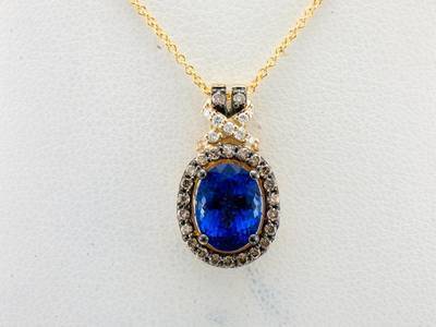 Le Vian® Pendant featuring 1 3/4 cts. Blueberry Tanzanite®, 1/4 cts. Chocolate Diamonds® , 1/15 cts. Vanilla Diamonds® set in 14K Yellow Gold