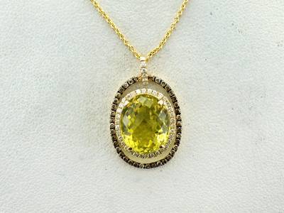 Le Vian Grand Sample Sale Pendant featuring 4 3/4 cts Lime Quartz, 1/5 cts Chocolate Diamonds, 1/6 cts Vanilla Diamonds set in 14K Yellow Gold
