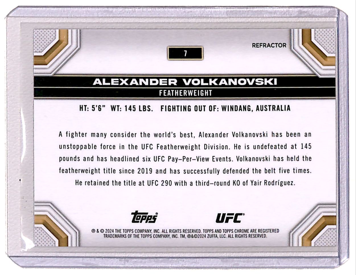 2024 Topps Chrome UFC Refractor Alexander Volkanovski #7