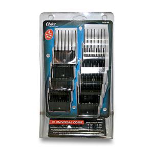 Do it yourself with the Oster Universal Clipper Comb Set. This set allows you to cut hair to a specific, uniform length. All comb sizes are designed to fit any Oster Clippers, as well as most other clippers available. And they are easy to use - simply attach comb to the base of the blade, pull up and secure into position. Set Contains 1 Each of 1/16", 1/8", 1/4", 3/8", 1/2", 5/8", 3/4", 1", 1-1/4" combs. Includes Oster’s storage pouch to hold your clipper set.