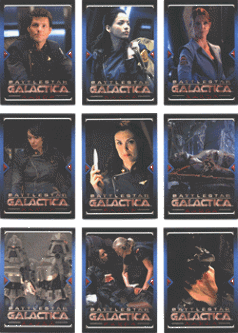 A 9-card set that recaps of the 2-hour Battlestar Galactica Razor special! These cards are numbered R1 through R9.