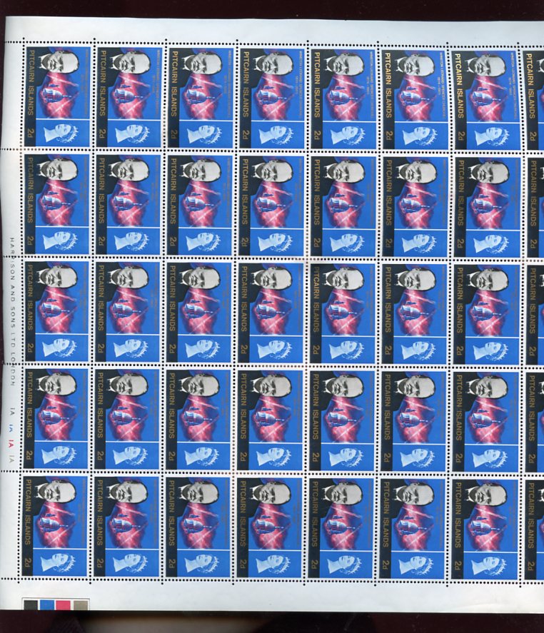 PITCAIRN Is.1966 CHURCHILL 2d PART CYL.SHEET 40 stamps