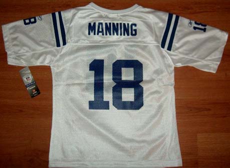 This item for sale is a Brand New - Peyton Manning Indianapolis Colts Youth Girls Colts White team uniform color fitted replica jersey. Phenomenal jersey made by the world leader in licensed sports apparel - Reebok.