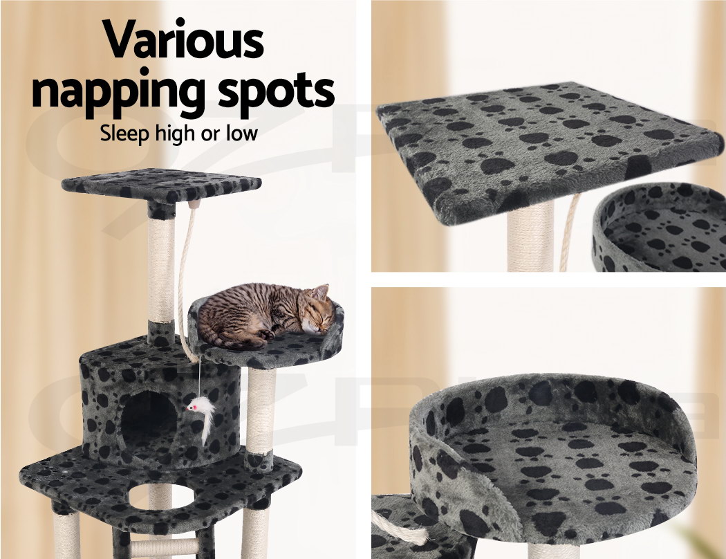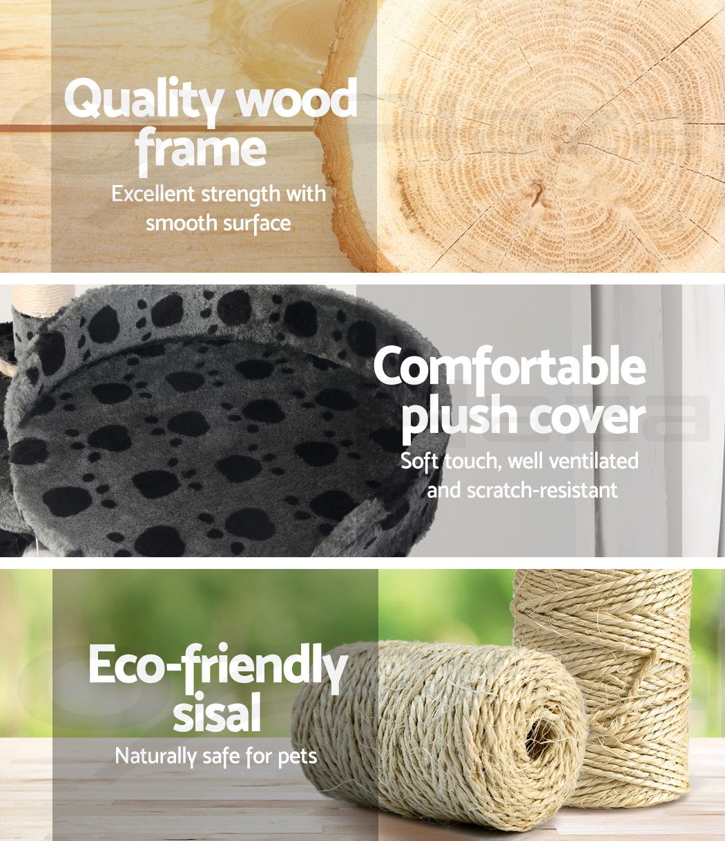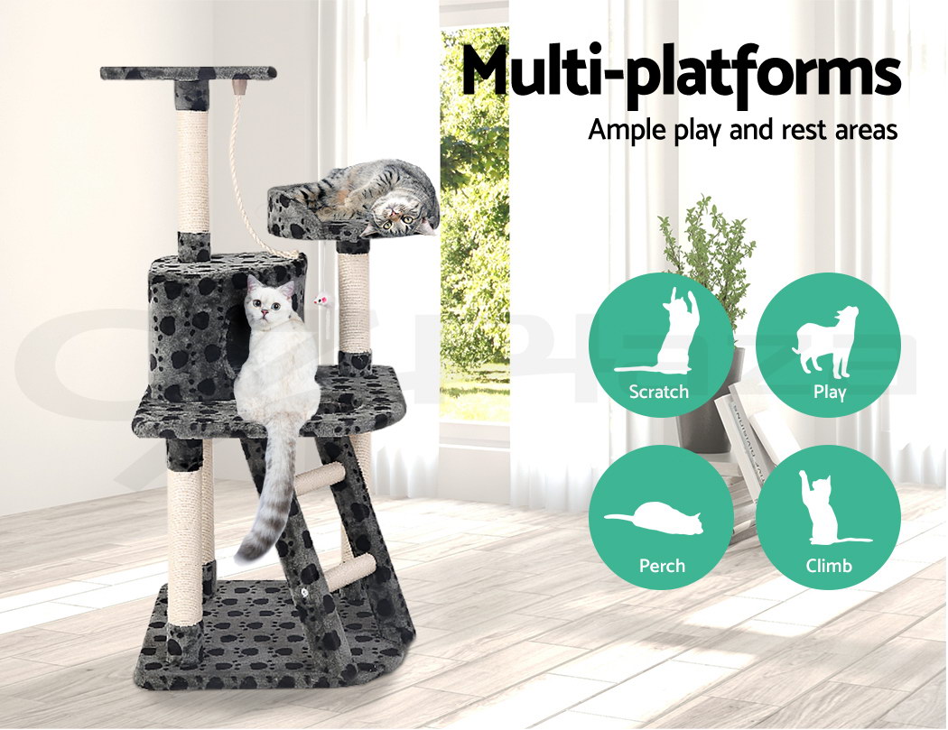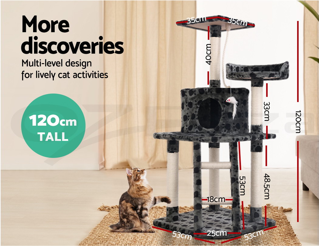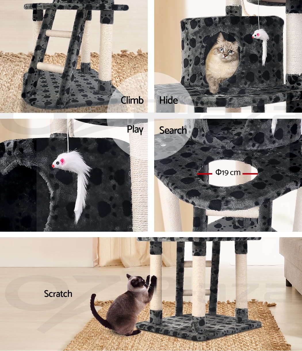 Combining scratching, perching and climbing, our cat tree is every kitty's dream haven. Have them enjoy hours of entertainment and a comfortable resting place on the soft plush covered platforms. Your kitty can enjoy the fun alone or share its haven with its buddies. An absolute paradise for every cat!