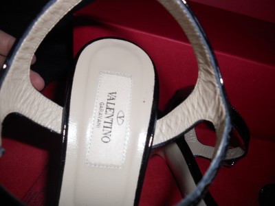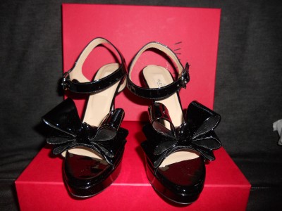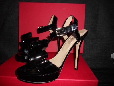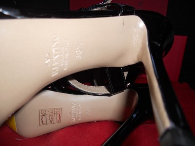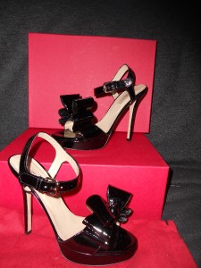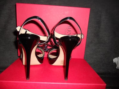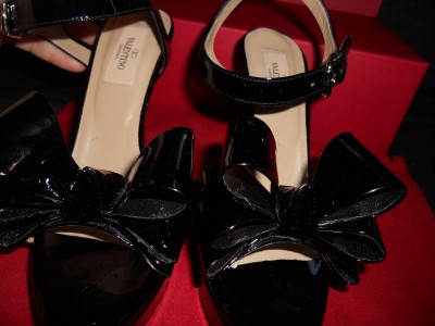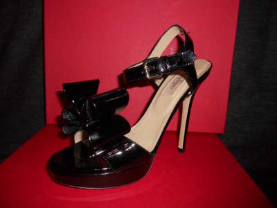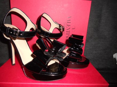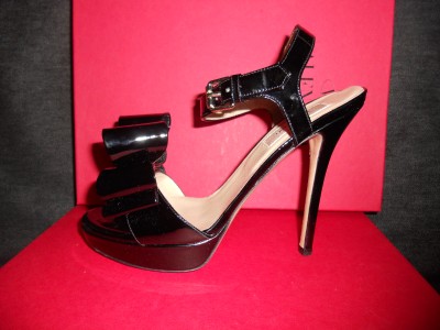 VALENTINO SPRING 2011 COLLECTION This sandal is just another fine example of Valentino's classy masterpiece. Designed in black with exaggerated bow, it is made of patent leather so you can be sure of its endless gloss. This Valentino sandal has 1-inch of platform and a high 5-inch heel. Leather lining and padded insole. Leather sole. Made in Italy.SIZE: 39.5 EU (Insole: 10 1/8") SIZE: 36.5 EU (Insole: 9.5") GUARANTEED AUTHENTIC! Retailed for $795. Brand New in the Original Box. No dust bag.