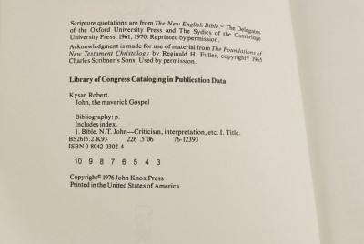 - John, The Maverick Gospel By Robert Kysor 1976 ISBN 0804203024