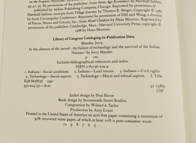 - In The Absence Of The Sacred The Failure Of Technology And The Sirvival Of The Indian Nations 1991 ISBN 0871565099
