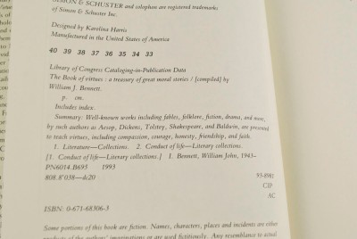 - The Book Of Virtues A Treasury Of Great Moral Stories 1993 ISBN 0671683063