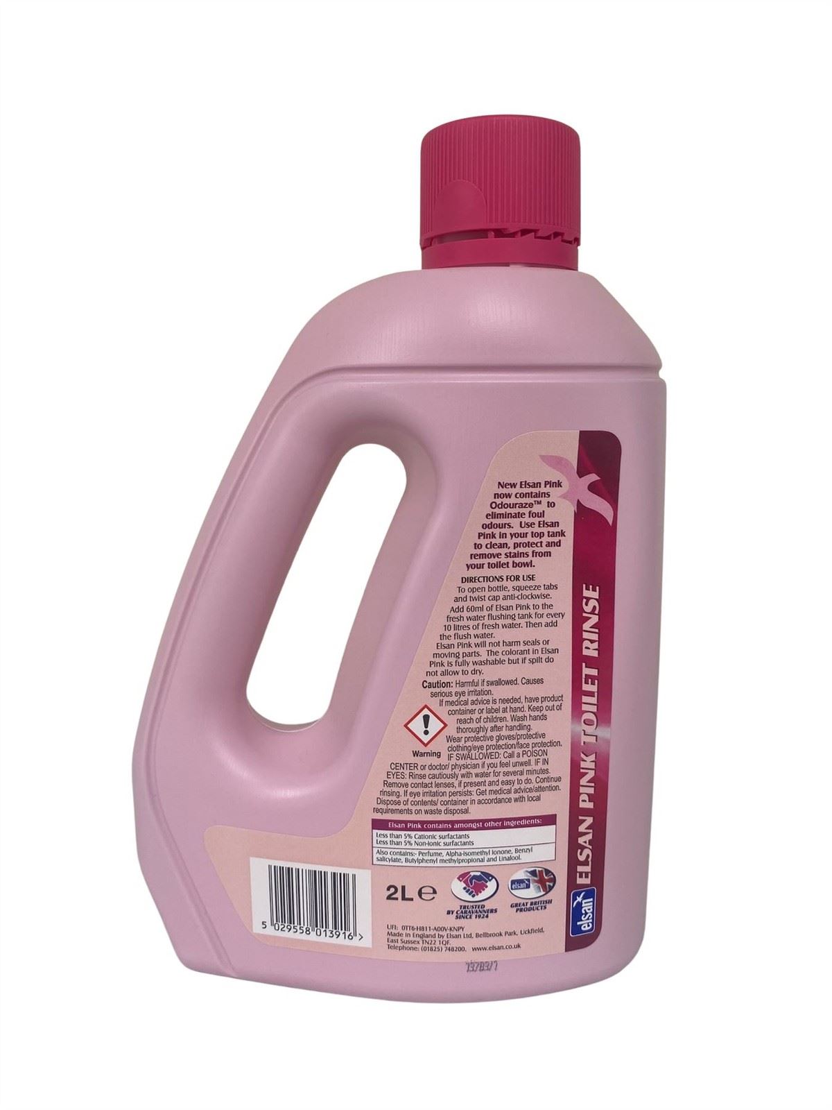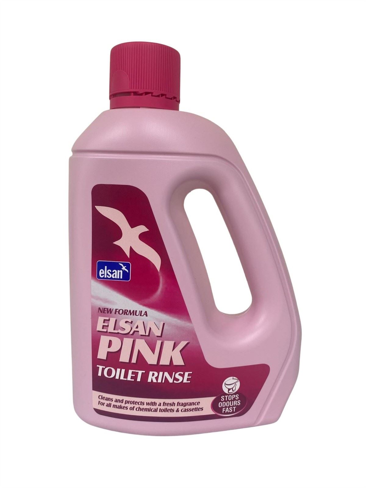 Elsan Pink perfumed toilet fluid. Kills germs, neutralises odours. For all chemical toilets and cassettes. Simply add 60ml of Elsan Pink for every 10 litres in the waste tank. Keeps toilets safe, clean and fresh. Conforms to British Standard 1040: 1997. Size 2 litres.