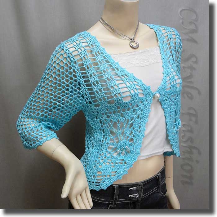 Crochet Knit Eyelet Cardigan Shrug Bolero Top