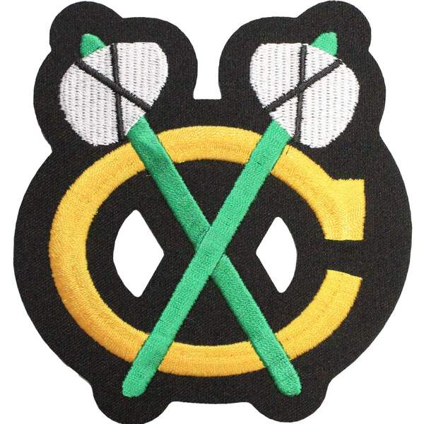 This is the patch for the Chicago Blackhawks jersey's shoulder logo. This patch is designed for commemorative, nostalgic display, and collection. The patch measures approximately at 4.25 wide X 4.5 inches tall.