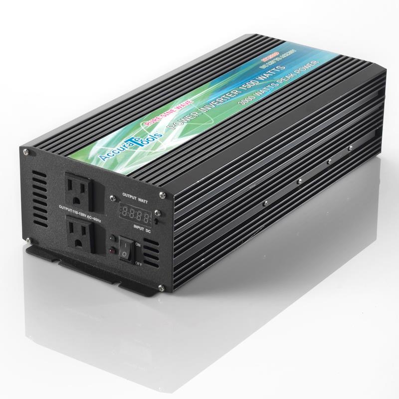| Product Specifications: .: 1500 Watts Continuous Power .: 3000 Watts Peak Power .: Digital LCD Display (Input Voltage/Output Wattage) .: Low Battery Alarm w/ Auto Shutdown .: Overload & Short Circuit Protection .: High Surge Capability (to start TVs) .: Voltage Input Range: 10-15V DC .: Voltage Output: 110-120V AC .: Output Frequency: 60 Hz .: PURE SINE WAVE OUTPUT .: Efficiency 90% .: THD <4% | ![]() |