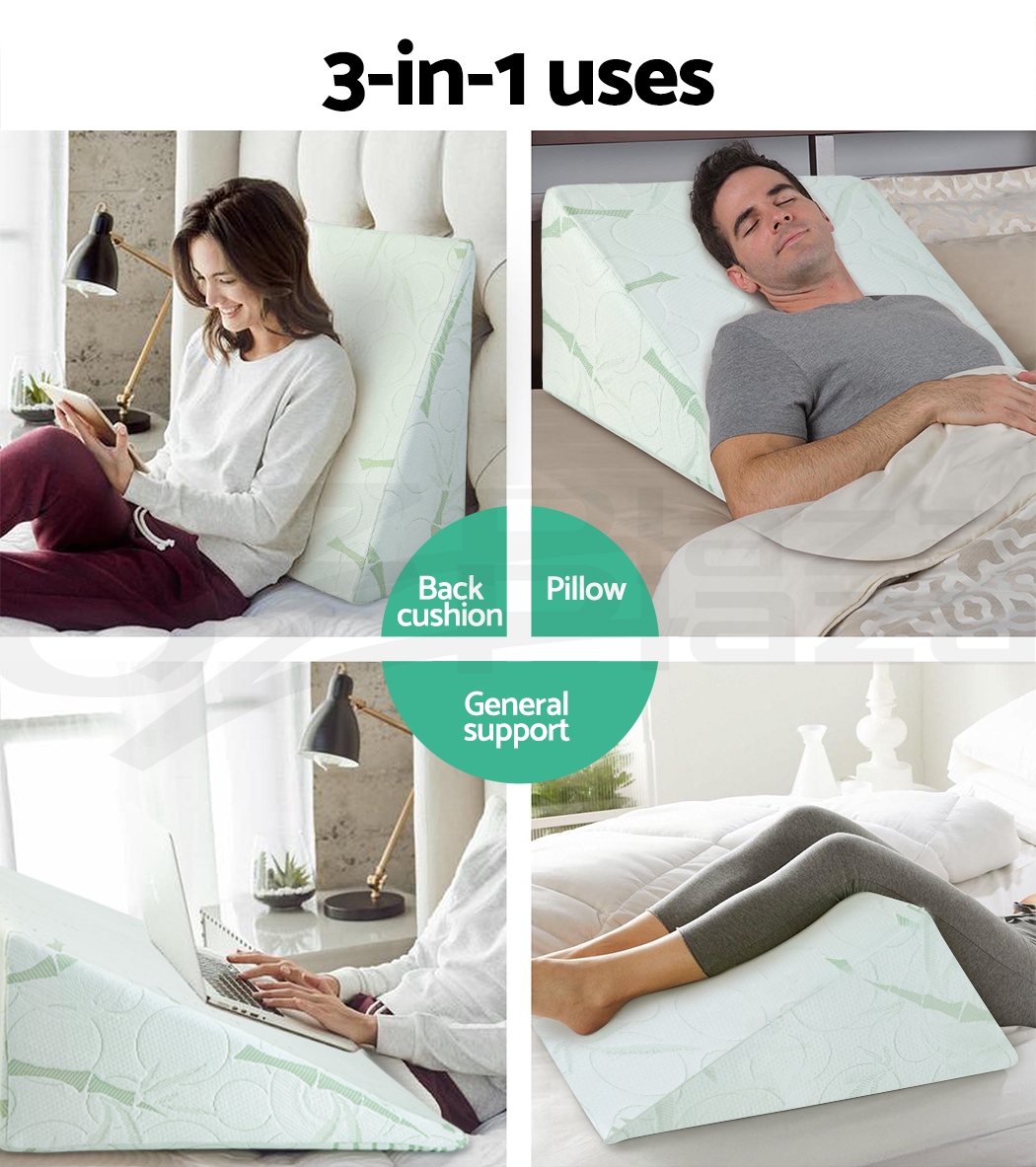 With a highly resilient base foam and a cool gel memory foam filling, the 3-in-1 multiple use Bed Wedge Pillow Cushion is absolutely perfect to help elevate your upper body and legs and lean against for comfortable and soothing back support. It is particularly useful for those who are suffering from acid reflux, difficult breathing issues, poor blood circulation and back or neck problems.