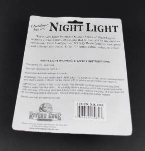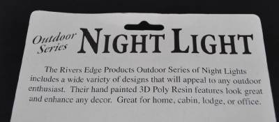 This is a Rivers Edge night light from their "Outdoor Series" collection which would appeal to any outdoor enthusiast. It has an on/off switch and would be great for home, cabin, lodge or office!!!!