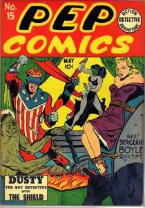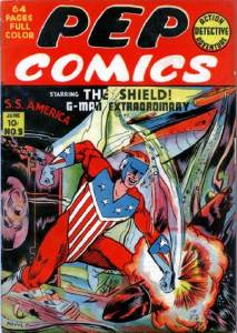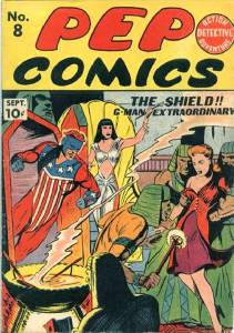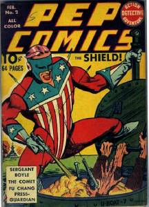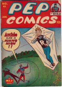 Pep Comics was the comic’s title that introduced the superhero character The Shield, the first of the super-patriotic heroes with a costume based on a national flag (pre-dating Captain America by over a year), The Comet, who was the first superhero to die, and Archie Andrews, who eventually became the main focus of the company's extensive range of publications.
