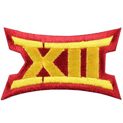 This is the Big 12 conference patch for the Iowa State Cyclones as worn on field. These patches can be sewn on jerseys and are officially licensed by the Big 12. The patch measures approximately 2.5" wide x 1.5" tall.