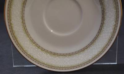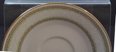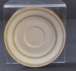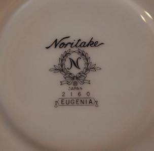 This is a vintage Noritake saucer which was made in Japan. The pattern is 2160 Eugenia with white flowers and green shade. It is about 6 inches across. There are not any chips or cracks!!!!