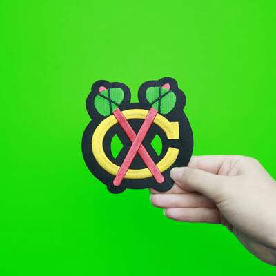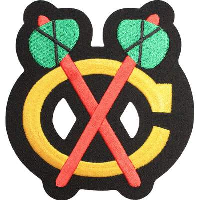 This is the patch for the Chicago Blackhawks jersey's shoulder logo. This patch is designed for commemorative, nostalgic display, and collection. The patch measures approximately at 4.25 wide X 4.5 inches tall.
