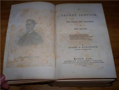 Offered for sale is an ORIGINAL 1865 Vintage FIRST EDITION Secret Service, The Field, The Dungeon, and The Escape. Published by American Publishing Company, 1865. This date appears on title page. Nicely Illustrated, all plates present. Condition as follows: no loose or missing pages, no writing. Binding is tight. No bookplates or library markings. Pages are crisp & clean, minimal age foxing. Cover has some very slight edge, surface & corner wear. Some paper residue on front cover. Please view the photos, and ask questions before you commit to purchase. It will make a nice addition to your collection! Insurance may be required. Please view my Ebay Listings this week for more Great Estate Items & Collectibles! Thanks for bidding!