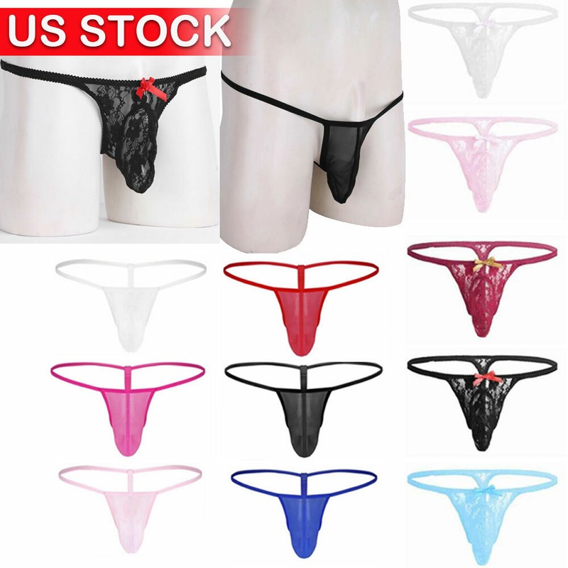 Men See-through Lace Bulge Pouch T-back Underpants Whistle Decor Low Waist G-string Thongs Underwear.