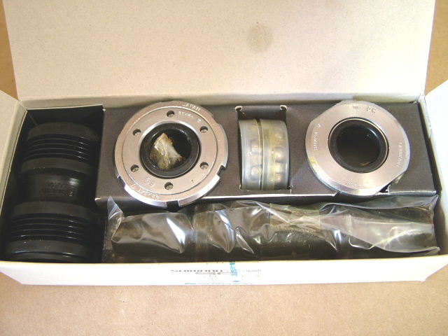 Please note the spindle/axle length is fairly important, because Shimano cranksets (and other brands) generally have different profiles. This is key, because it's the combination of the bottom bracket spindle length and the right-side crank arm profile that will have the greatest impact on chainline. There is not as much information on these older style cup-n-cone bottom brackets, but we believe Shimano's chainline recommendations (for their cup-n-cone bottom brackets) should be consistent with their newer cartridge bottom bracket offerings. Assuming this fact, a chainline of 43.5 mm (measured from the center of the seat tube to the midpoint between the two chainrings on a double crankset) or a chainline of 45.0 mm (measured from the center of the seat tube to the middle chainring on a triple crankset) is considered optimal for a road bike. Alternatively, a chainline of 47.5 mm (measured from the center of the seat tube to the middle chainring on a triple crankset) is considered optimal for a mountain bike. The only other consideration here is that Shimano also specifies that a 50.0 mm chainline may be preferred for a mountain bike when the front derailleur is mounted on an oversized seat tube...pushing the front derailleur further to the right. Given these parameters, there are probably a number of cranksets that may be compatible with this bottom bracket...although our research indicates that Shimano's 105 SC crankset from the early 90's (double chainring model FC-1055) is compatible and the intended match for this bottom bracket. As a result, this offering is one of Shimano's better quality bottom bracket from this period. It's not high-end Ultegra or Dura-Ace quality, but the critical component pieces (including the races), appears to have received some additional finish-work attention, which should improve performance and possibly longevity. It also retains all of the "sealing" features of the higher-end cup-n-cone bottom brackets...including the rubber-like ring inserts that line the inside of each cup to prevent dirt and other elements from entering through the spindle/axle opening...as well as the flexible plastic sleeve that presses against the inside of each cup to form another seal to keep dirt and other elments from getting to the bearings or races from other openings in the frame (i.e., seat tube opening for the saddle, etc). Also (and as noted above), the square-tapered spindle ends are compatible with other Shimano cranksets, but please check your crankset's spindle/axle length requirements before attempting to use this offering with another Shimano crankset...and we can try to help in this regard should you have questions). We empasize this last point, because chainline has a direct impact on shifting performance, so even though selected Shimano crank arms may have the same square-tapered interface, if their spindle/axle length requirements are different from this offering, then there is a strong possibility that shifting performance will suffer...so please pay particular attention to spindle lengths when it comes to purchasing any bottom bracket. As for condition, these units are new and in their original retail box...so very nice cosmetic condition.