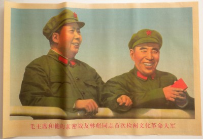 This replica is new but made to appear like an old historic original from the time of the cultural revolution. It is made to appear aged with yellowing age marks, imperfections, minor wrinkles, and rough edge creases.