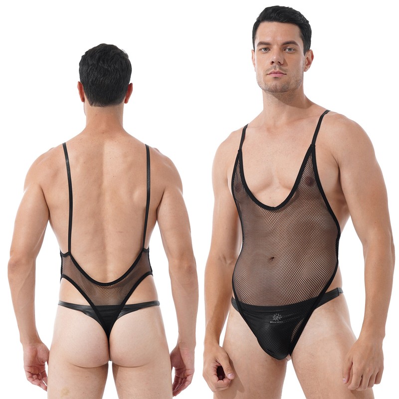 - Sexy mens stretchy smooth bodysuit, T-back.
