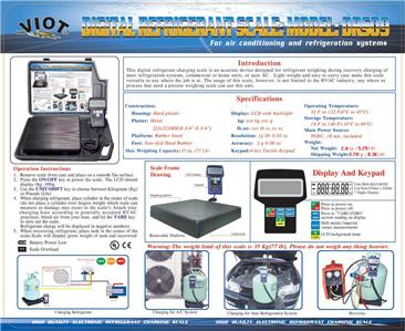 This is it! The Most Sensitive and Accurate Refrigerant Charging Weighing Scale on The Market to 1/4 oz to 220 lb with Carrying Case HVAC Service Tool Or Any Operation That Need Precise Weighing Scale. Brand New Refrigerant Charging Scale. Charge scale is the modern service tool to replace, bulky and fragile glass charging cylinders. It allows you to charge any refrigerant directly from refrigerant tanks (virgin or recovered) up to 220 pounds/100kg gross weight. The large rubber-lined platform accommodates tanks and containers for easy weighing. The compact case opens a full 180 degree for flat, unobstructed use. The removable display unit reads the amount of refrigerant as it is being transferred. buy it now for only $99.77 More HVAC tools available at https://viot.us/HVAC |