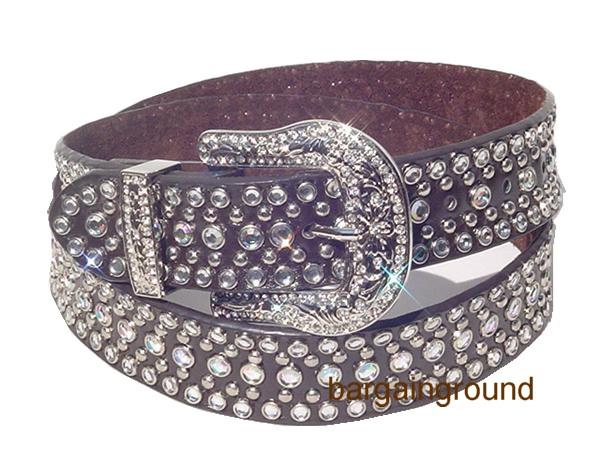 You are bidding on a Rhinestone Leather Studded Belt with removable western rhinestone snap-on buckle and keeper. This is the kind of belts worn by many celebrities.