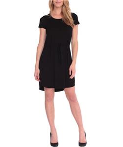 Super soft jersey knit and stretchy short sleeve dress with a drawstring waist for summery ease. Features: