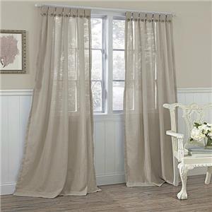Solid color slab with decorative button tab top. Casual and simple with the look of linen but the easy care of polyester. Measures 42"x84". Polyester; machine wash.