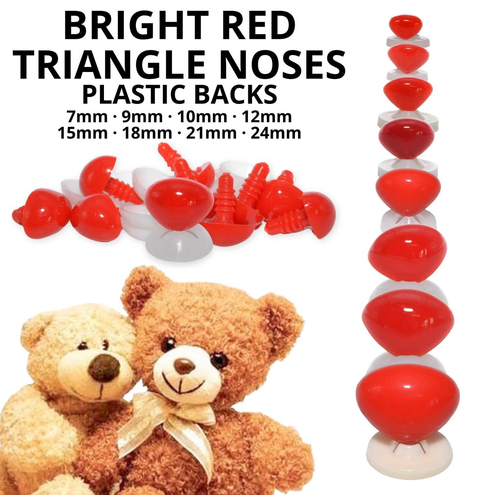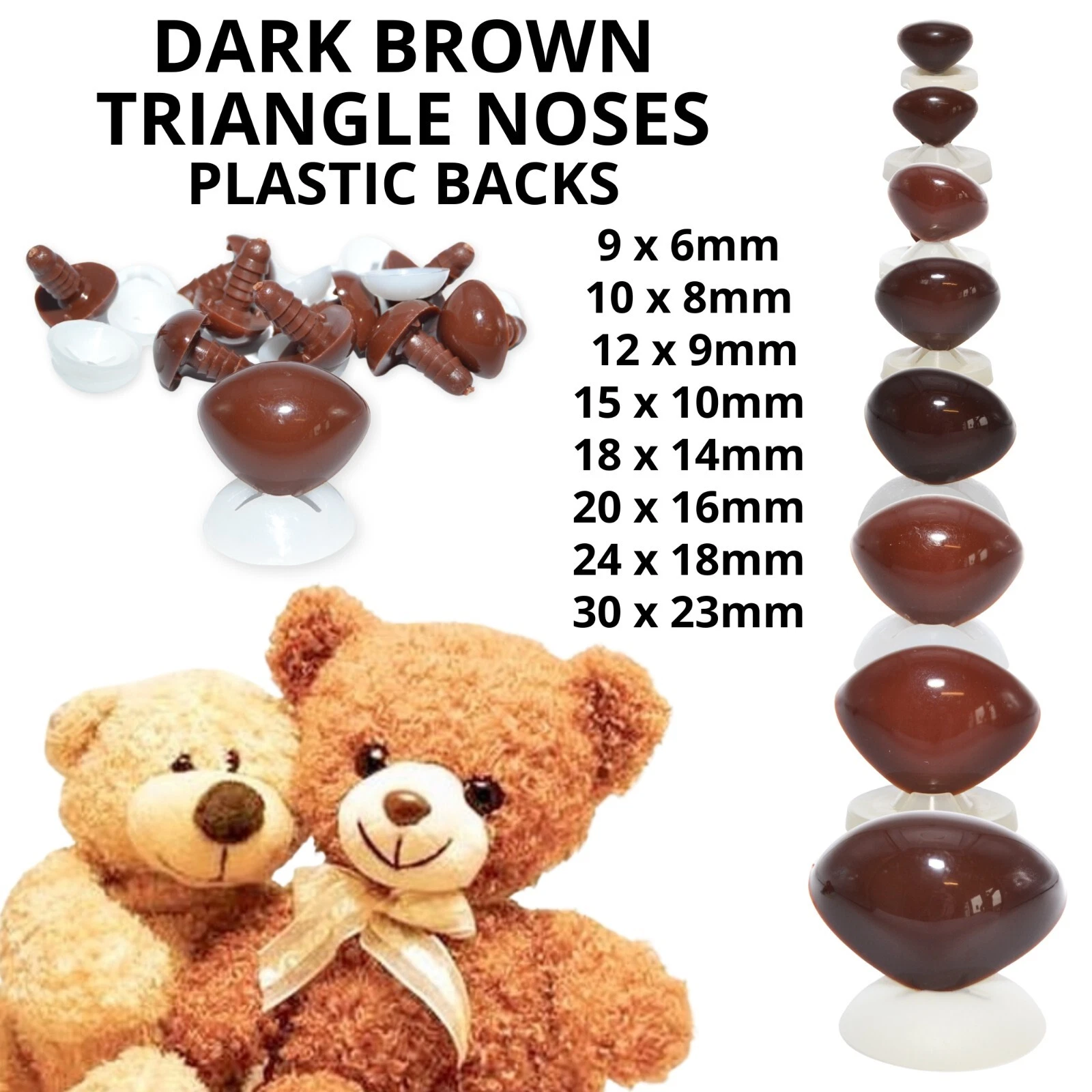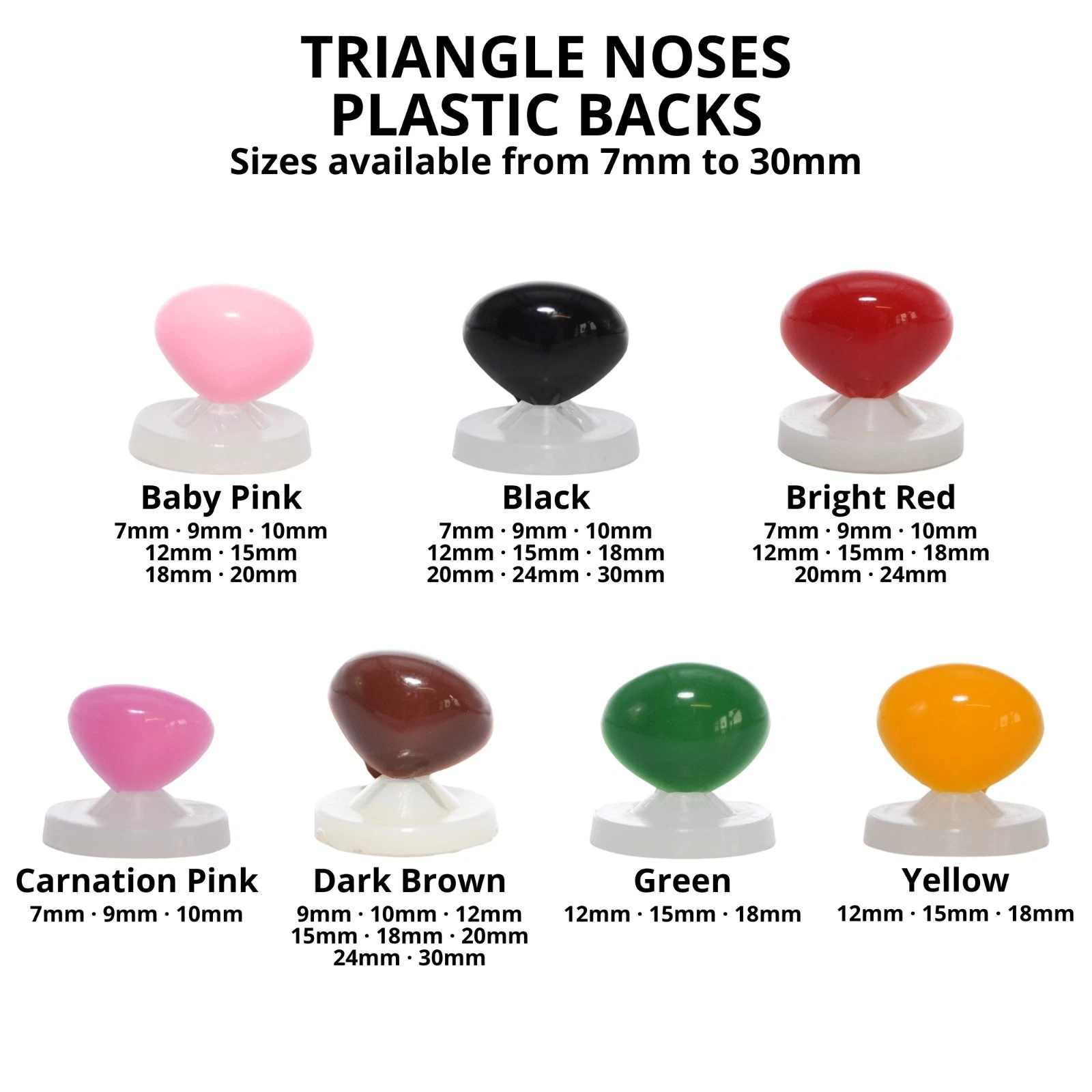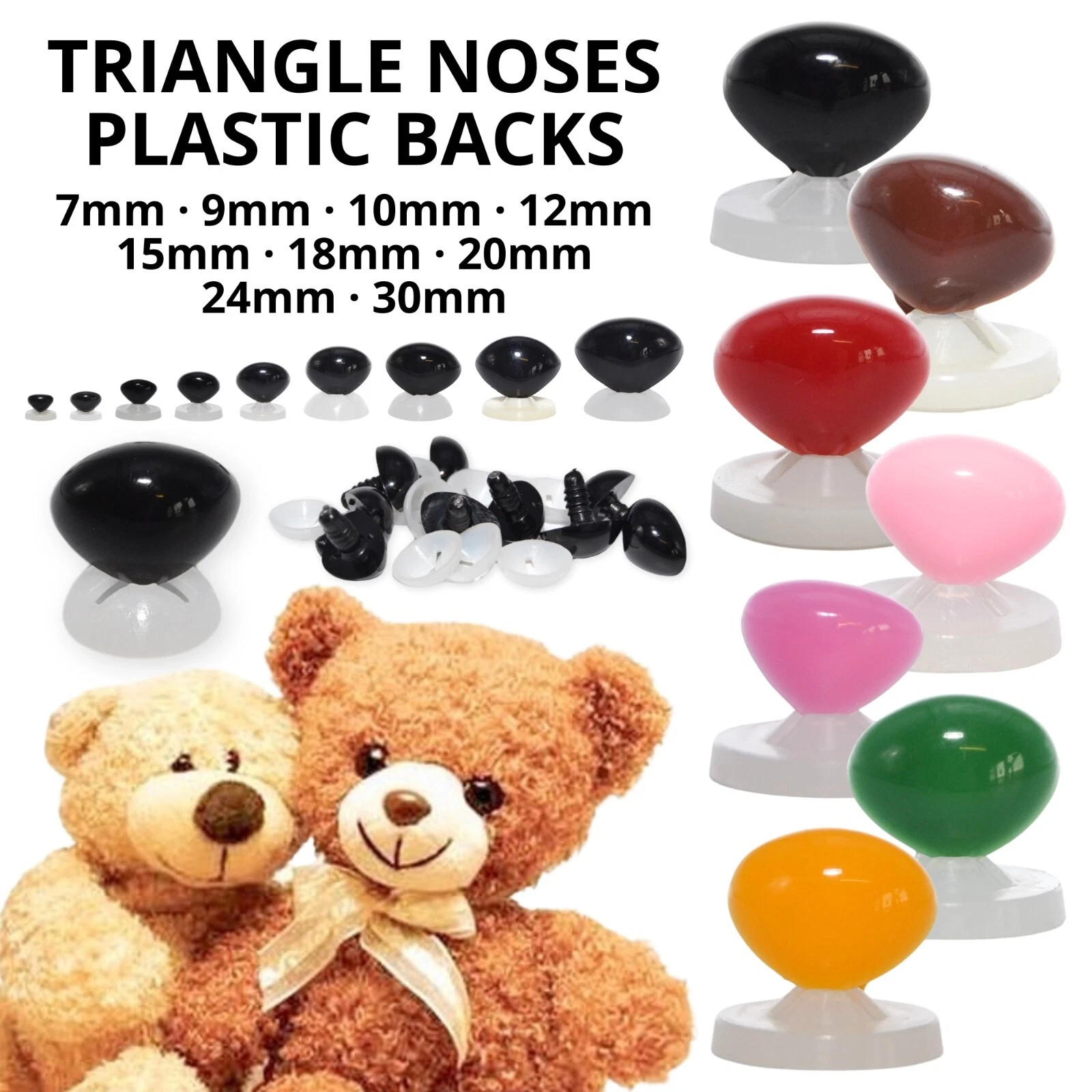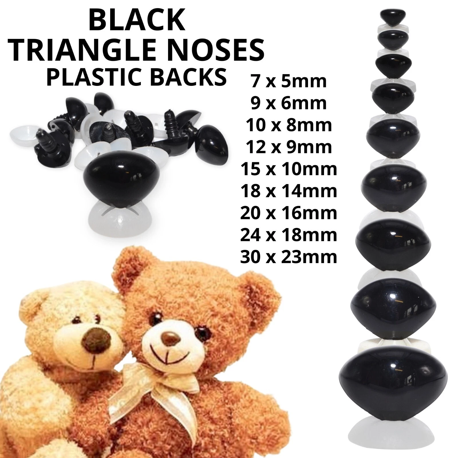 Triangle noses with plastic washers, perfect for all your soft toy making and replacement parts for existing toys.