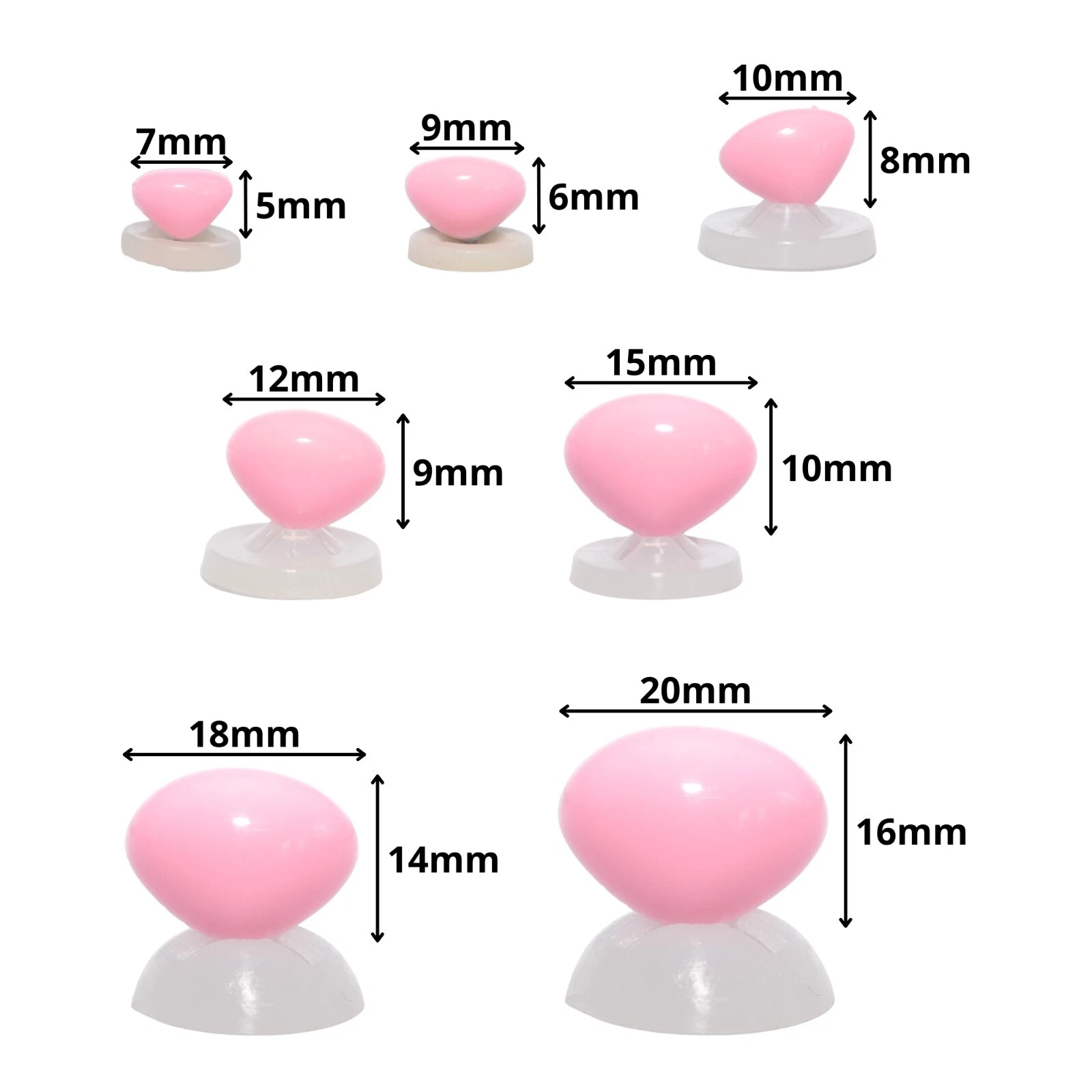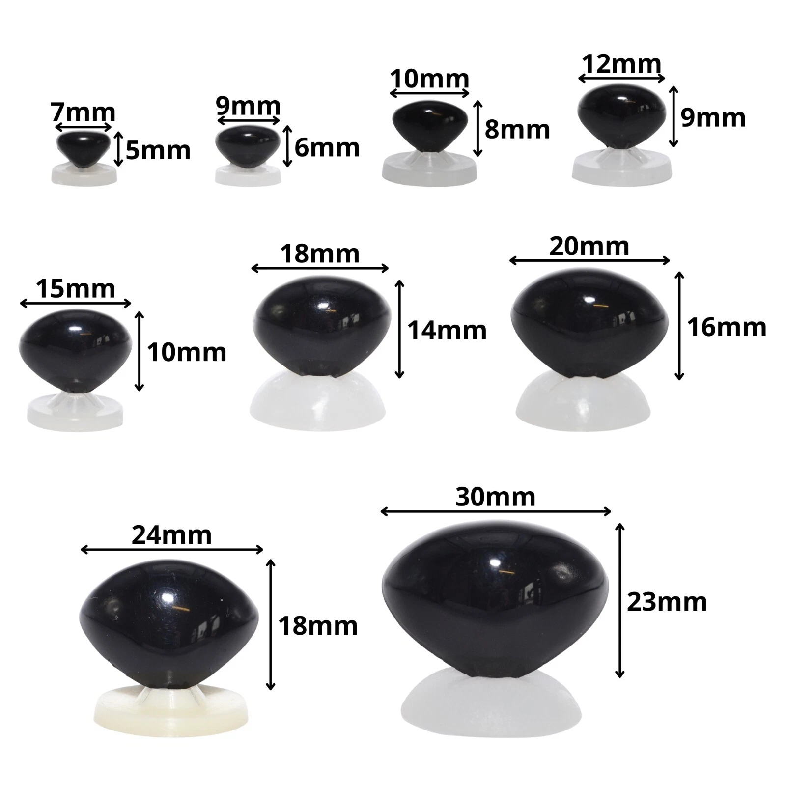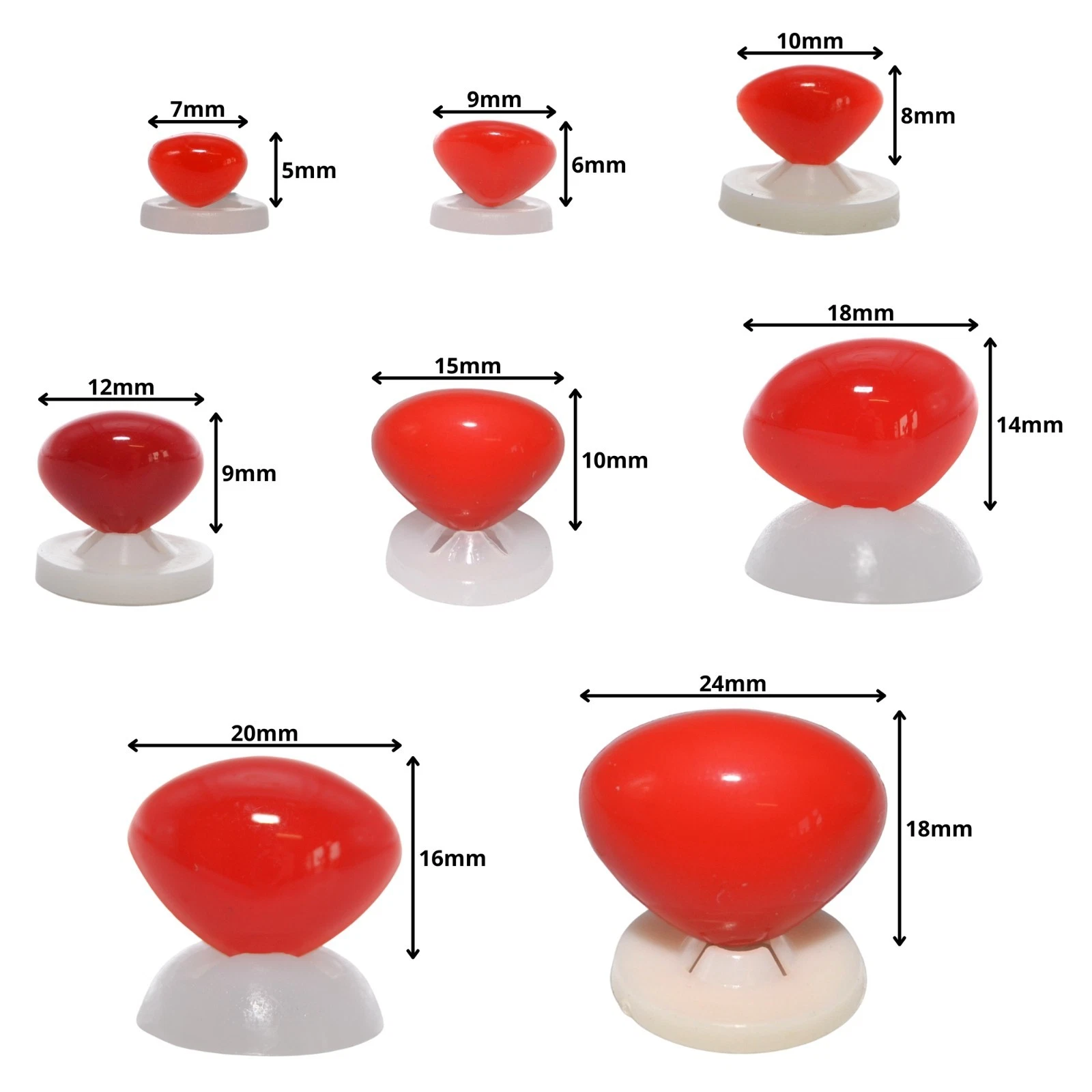Available in Baby Pink, Black, Bright Red, Carnation Pink, Dark Brown, Green and Yellow in sizes from 7mm to 30mm.