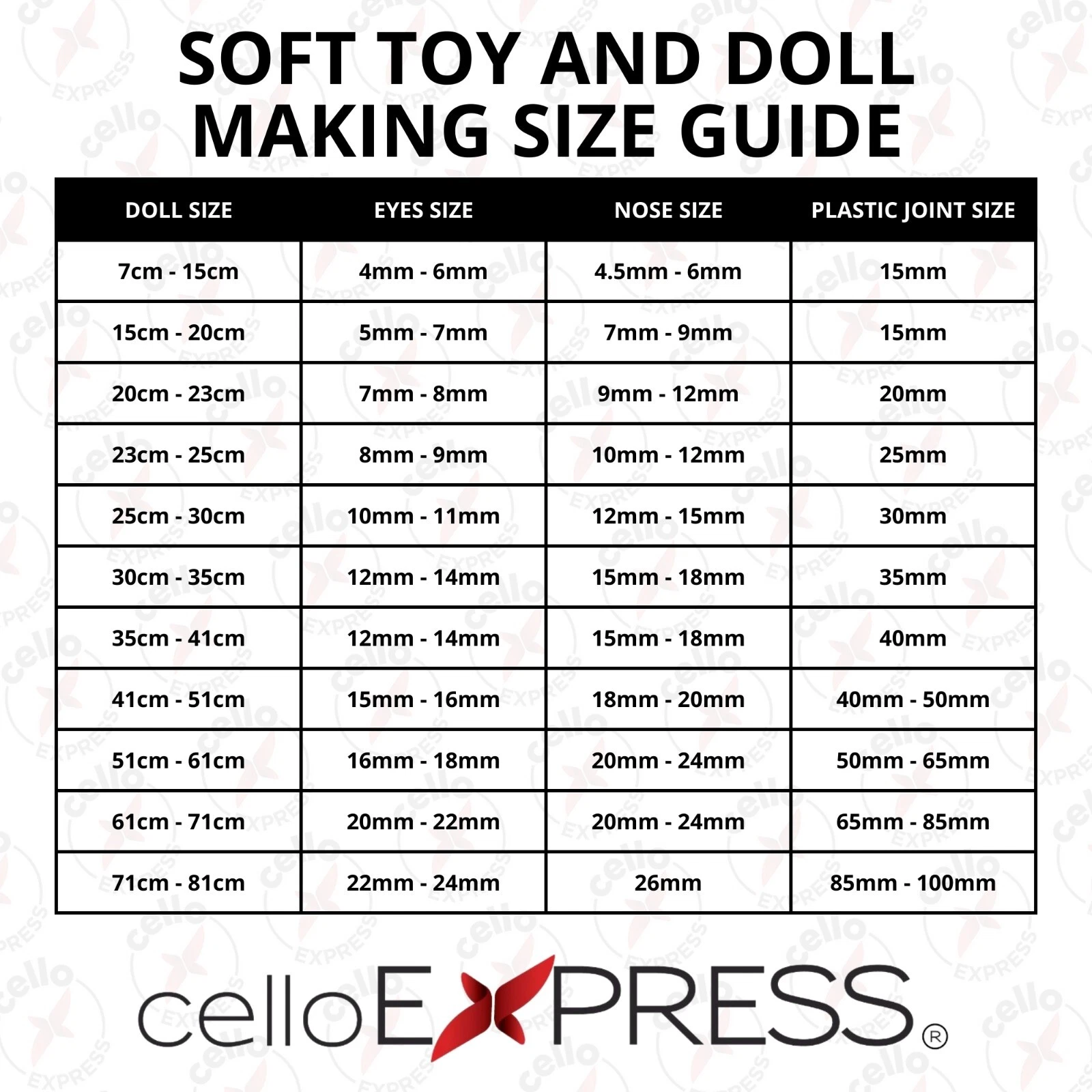 We have been told we have the best selection of soft toy eyes. We have plastic backs and metal back eyes and noses, and a selection of joints, fabrics, squeakers and rattles.