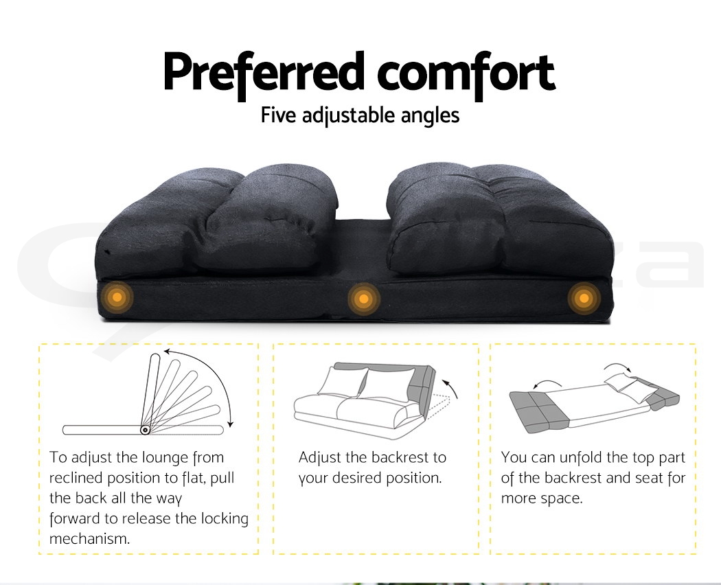 If you are looking for a comfortable and stylish addition to your relaxing space, check out our new Lounge Sofa Bed. This amazing floor sofa bed is fully adjustable with five positions, allowing you to find the most comfortable position whenever you want. For gaming, reading, taking a nap - just anything that you want to do. Made with the highest quality steel with reinforced joints, the sofa has a sizeable weight capacity and is extremely durable. The high resilience cushions are ultra comfortable and features a moisture-proof and wear-resistant Oxford fabric. Better still, it comes with two matching pillows with covers that are removable for easy cleaning.