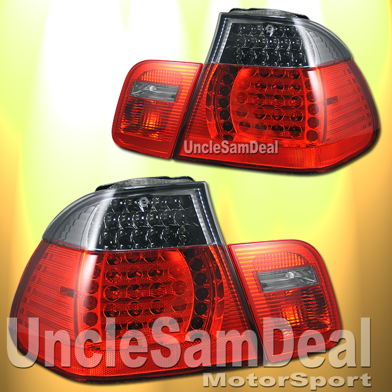 Welcome to UncleSamDeal Auto Parts!Product DescriptionUP FOR AUCTION A SET (TWO LEFT AND TWO RIGHT TOTAL 4 PIECES) of 2002-2005 BMW 3 Series E46 SEDAN 4 DOOR EURO RED/SMOKE LED TAIL LIGHTS - CONDITION: 100% NEW