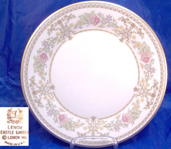 This auction is for aLenox Castle Garden Dinner Plate. Multiples Available. They measure 10 5/8" across. Condition is excellent with no chips or cracks and most pieces were used maybe once twice or never, shiny and bright, near mint condition! This set was made in the USA. You may buy 1 or as many as you need, price is per plate.