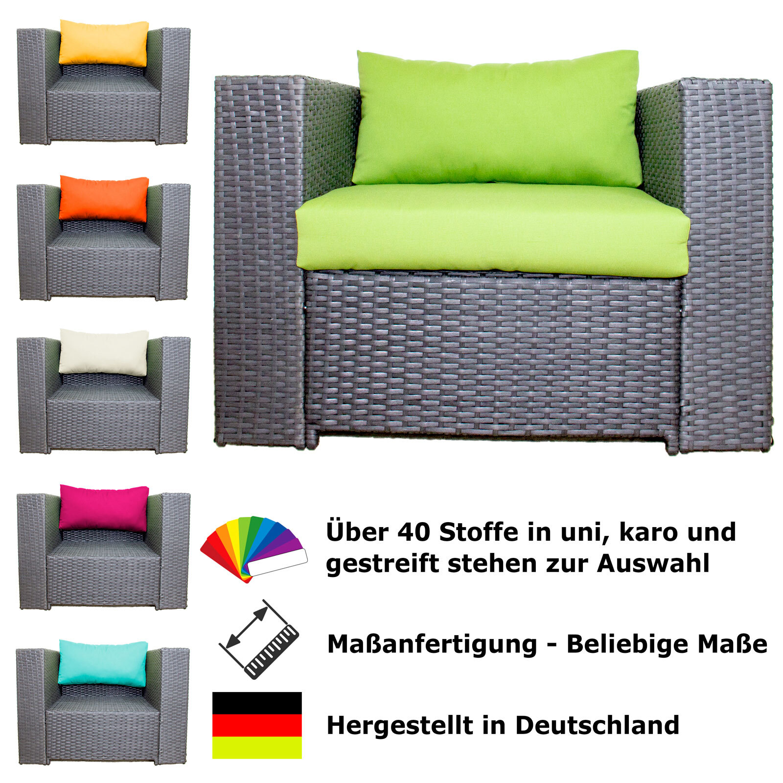 Gerne fertigen wir für Sie jeweils passende und maßgeschneiderte Produkte für Terrassen, Gartenmöbel, Esszimmermöbel oder auch Wandverkleidung sowie Polster, Beschattungssystemen, Sichtschutz oder Wandkissen.