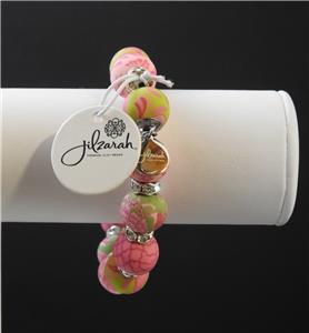 Unique and eye-catching, Jilzarah's premium jewelry designs are crafted by hand out of polymer clay as durable as it is colorful! Every piece of Jilzarah jewelry begins with original artwork brought to life via an artisan technique known as "caning". Beads are then skillfully rolled by hand from those canes, and baked at low temperatures before being strung into beautiful accessories! Because the designs are in the clay itself, not painted on, the designs will never rub off or lose their vibrancy! The resulting jewelry is a delightful mix of patterns and colors for a piece you'll wear over and over again. Mix and match all your favorites for endless style options.