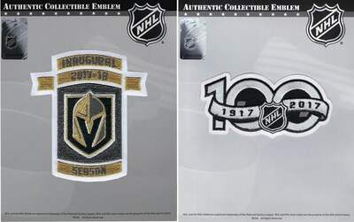 These are the patches for the 2017 NHL centennial anniversary and the 2017 Vegas Golden Knights Inaugural Season. The patches are designed for commemorative, nostalgic display, and collection. They come fully packaged and sealed.