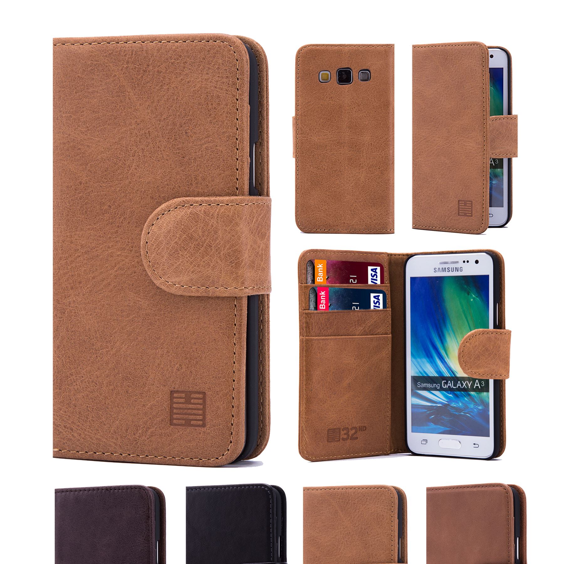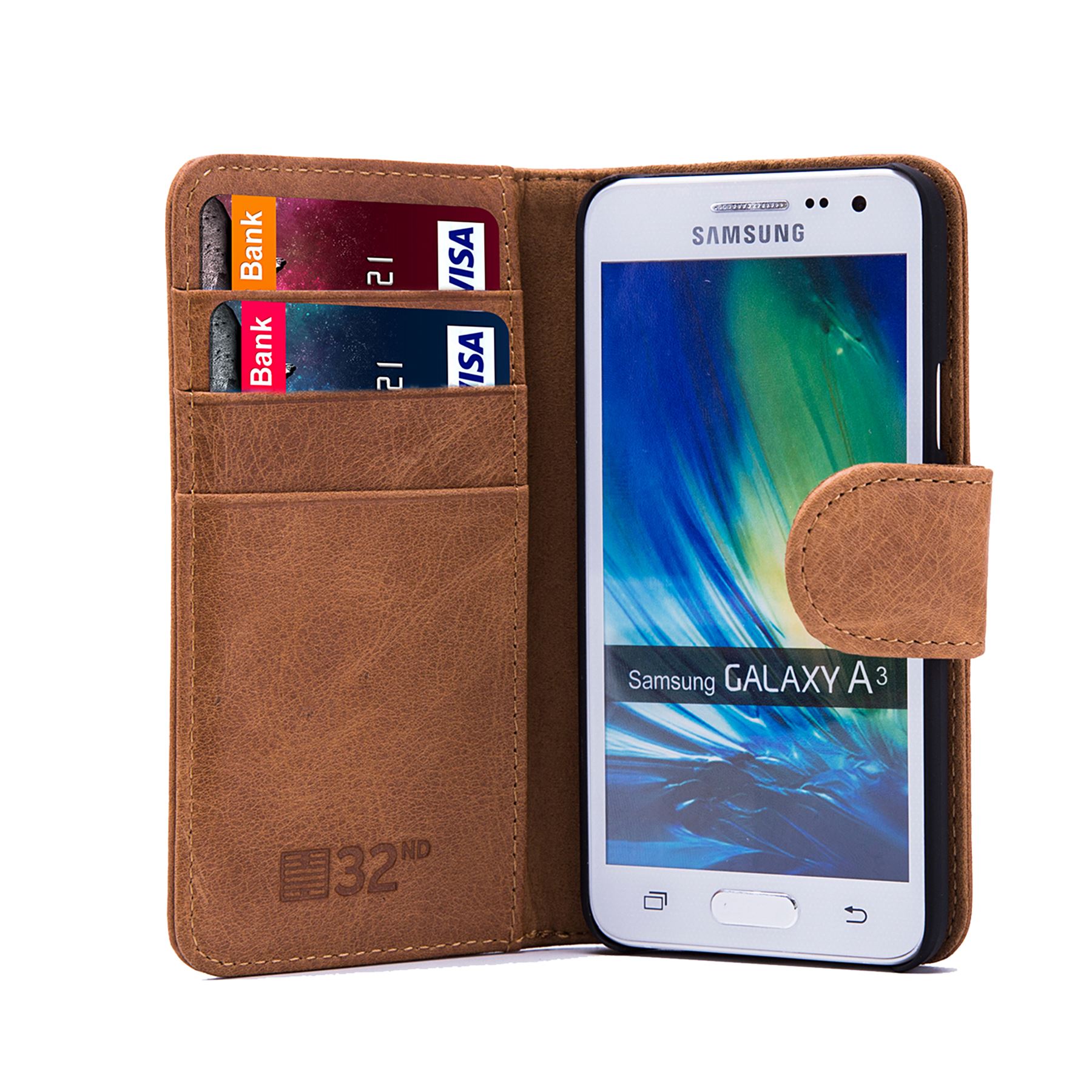 The 32nd genuine premium leather wallet case for Samsung Galaxy A5 (2016) (SM-A510) offers the best of style, protection and functional practicality for your device. This cover is made from superior grade real leather and features a handy card slot for storing a bank card, driving license or business card with another larger compartment that is ideal for storing notes or cash. This case is not only practical but also ultra-thin, ideal for those that want the benefits of a wallet style cover without the added bulk. With this in mind, the 32nd premium leather wallet case for Samsung Galaxy A5 (2016) (SM-A510) features a minimalist design that offers a touch of classic style to your phone without compromising functionality or style. All of our covers for Samsung Galaxy A5 (2016) (SM-A510) are precisely designed ensuring a snug fit every time, allowing easy access to all your model's important functions. Our genuine premium leather series cases for Samsung Galaxy A5 (2016) (SM-A510) have accurate cut-outs offering unobstructed access to your phones camera, speakers, headphone jack and charging port, along with additional features such as fantastic built in card slot and storage compartment making this case perfect for everyday use. With this elegant leather wallet case you'll never need to worry about having to remove your case while going about your daily routine. physical buttons such as the phones power button and volume rocker are within easy reach thanks to the specifically moulded interior shell.
