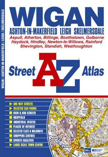 This street atlas of Wigan, Ashton-in-Makerfield, Leigh and Skelmersdale features 60 pages of coloured mapping and extends over an area which includes Mossy Lea, Standish, Adlington (part), Scot Lane End, Westhoughton, Over Hulton, Atherton, Walkden (part), Boothstown, Irlam (part), Fowley Common, Golborne, Newton-le-Willows (part), Blackbrook, Moss Bank, Digmoor, Pennylands, Ashurst, and Shevington. Also included is an inset map of Rainford. The 25 page index section lists streets, selected flats, walkways and places of interest, hospitals and hospices covered by this atlas.