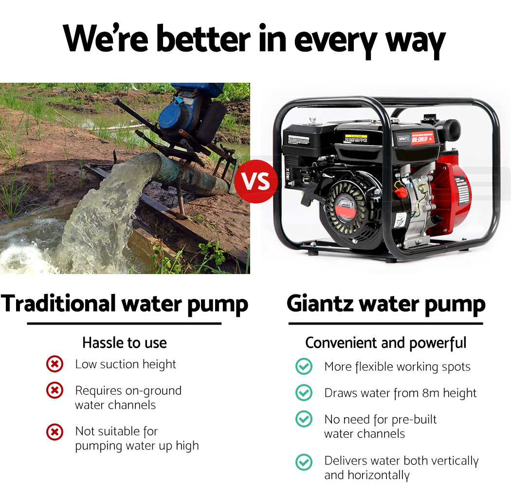 The GIANTZ 2-inch High Flow Petrol Water Pump provides outstanding performance for general water pumping applications.